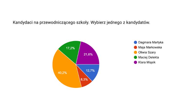 Wybory do Samorządu Uczniowskiego cieszyły się dużym zainteresowaniem wśród uczniów. W wyborach startowało 5 kandydatów, a każdy z nich przedstawił swój plan wyborczy i prowadził kampanię na rzecz swojej kandydatury. Najwięcej głosów zdobyła Oliwia Szary z klasy 8c, która cieszyła się największym poparciem i sympatią wśród uczniów. Dzięki zaangażowaniu w kampanię i wyraźnemu planowi, Oliwia uzyskała zaufanie większości wyborców. Wszystkim kandydatom serdecznie gratulujemy i życzymy sukcesów w pracy szkolnej przy współorganizowaniu różnych imprez i dni tematycznych. A poniżej ostateczne wyniki.