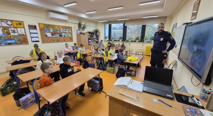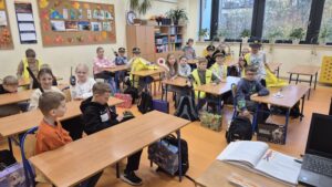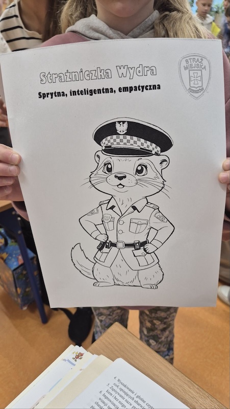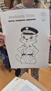 Na zakończenie spotkania uczniowie wykonywali kolorowanki przedstawiające Jeża Dyżurnego – maskotkę Straży Miejskiej, ucząc się przy tym zasad bezpieczeństwa w mieście.