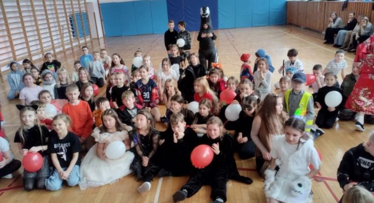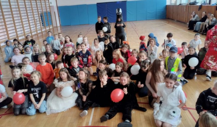 W naszej szkole zapanowała iście magiczna atmosfera! Uczniowie klas najmłodszych udowodnili, że wyobraźnia nie zna granic, zamieniając korytarze i salę gimnastyczną w krainę pełną barw, uśmiechu i tanecznej energii.