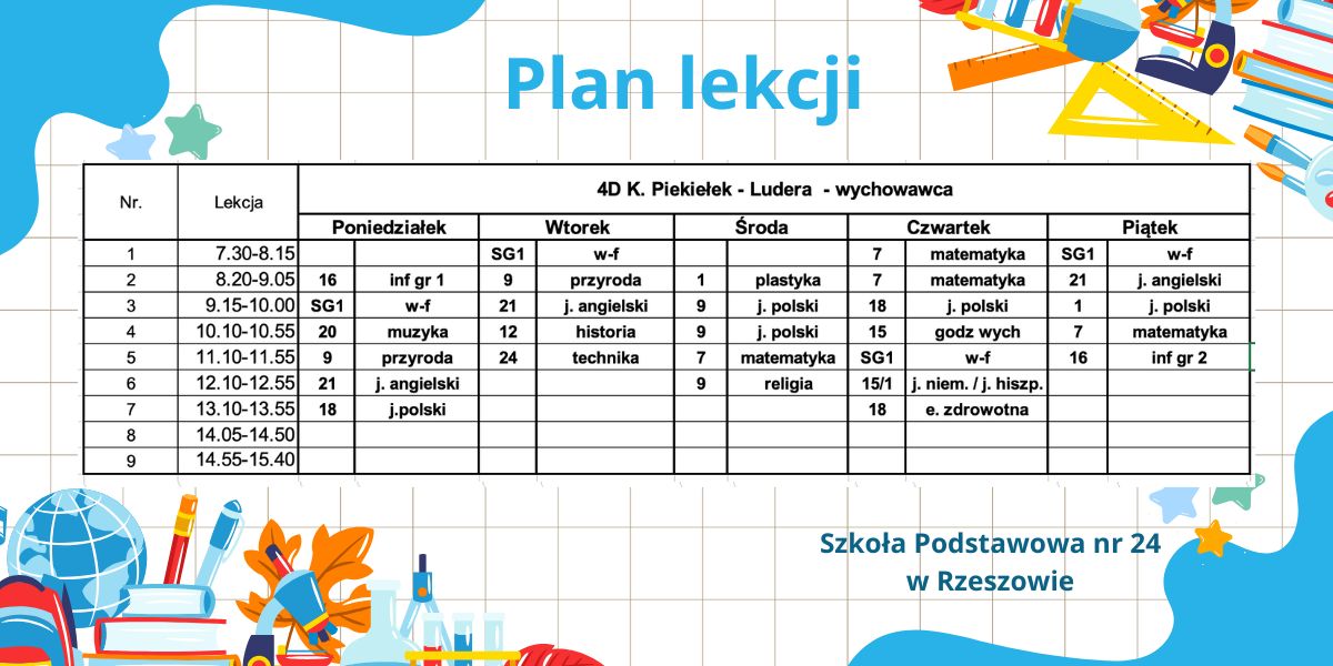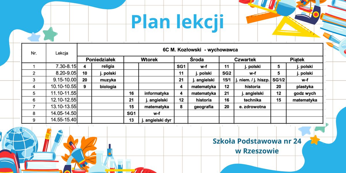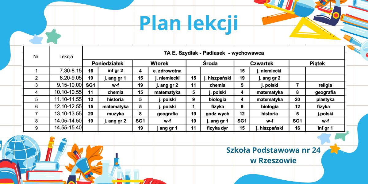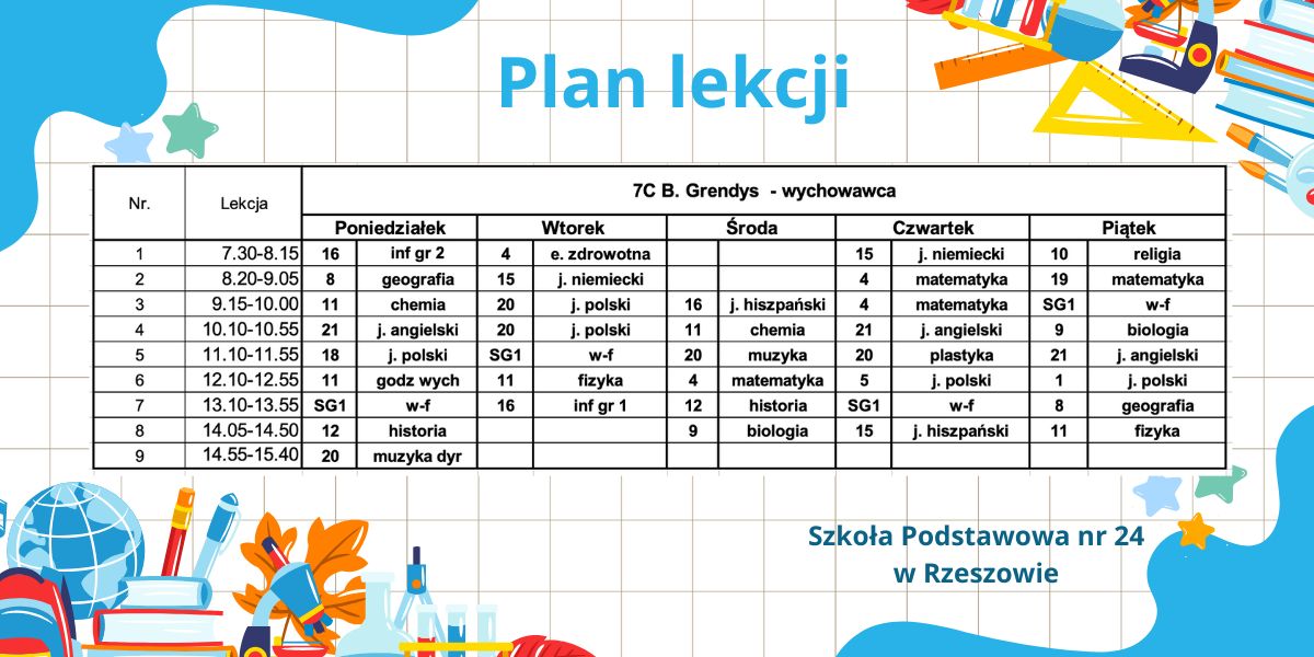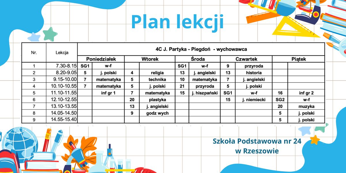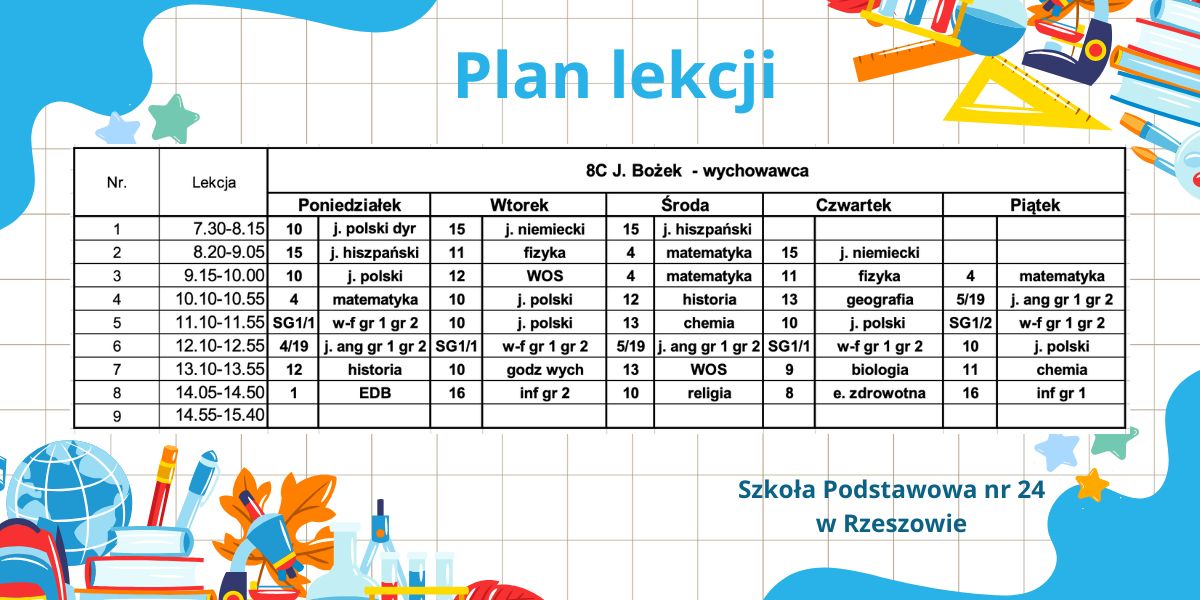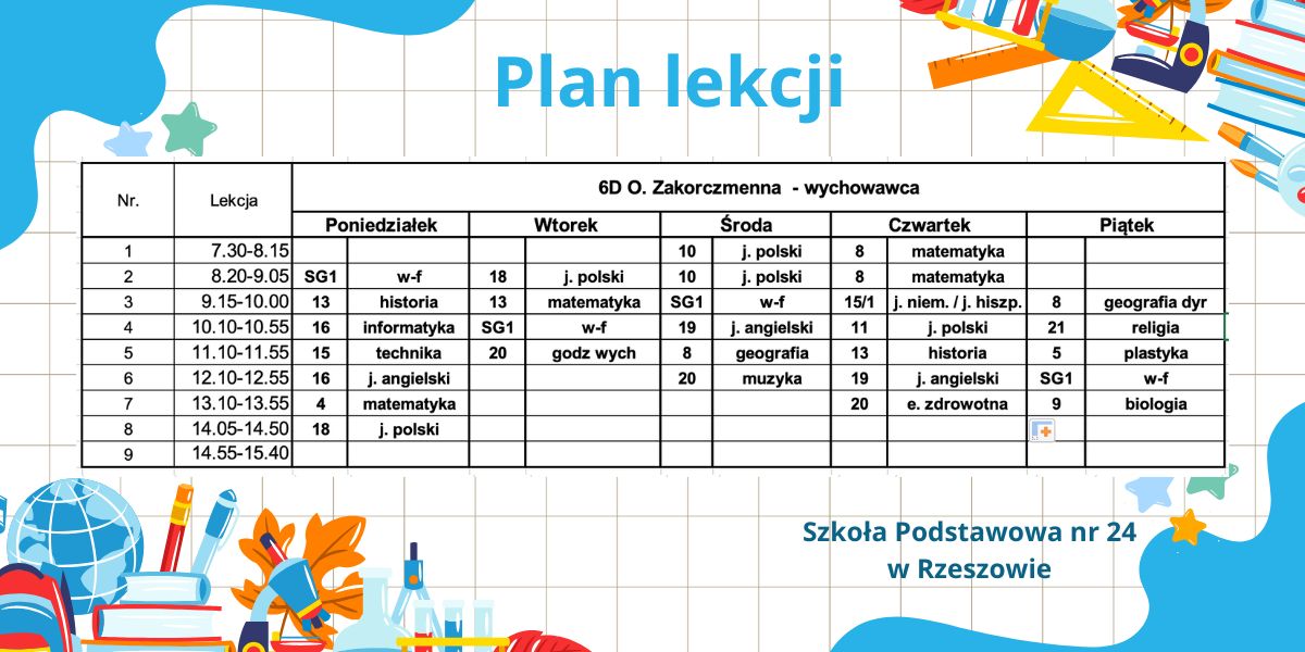 Plan lekcji – obowiązujący od 6.10.2025r. – korekta.