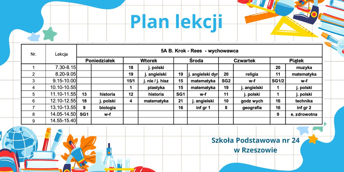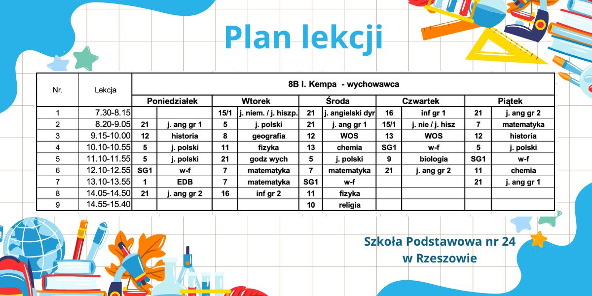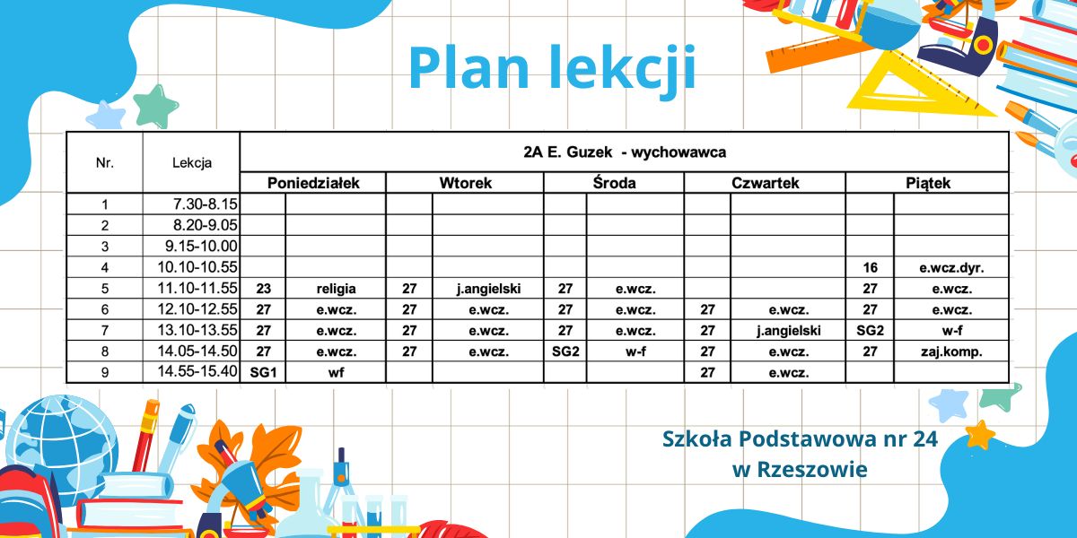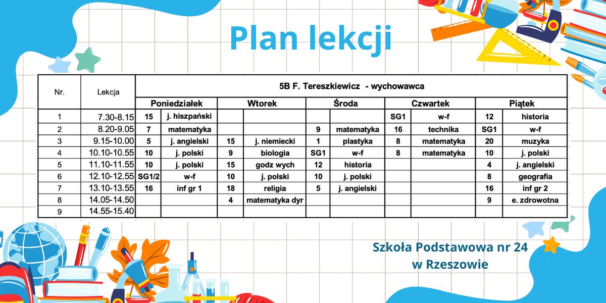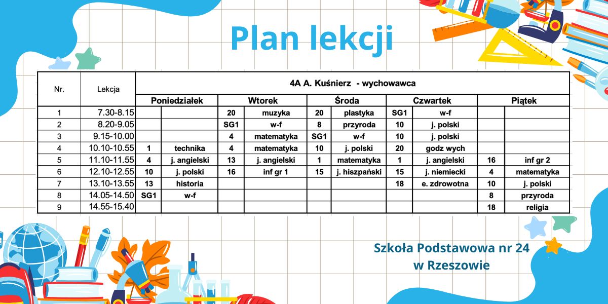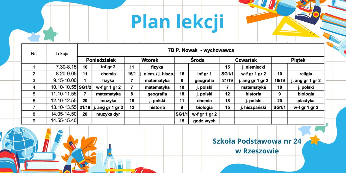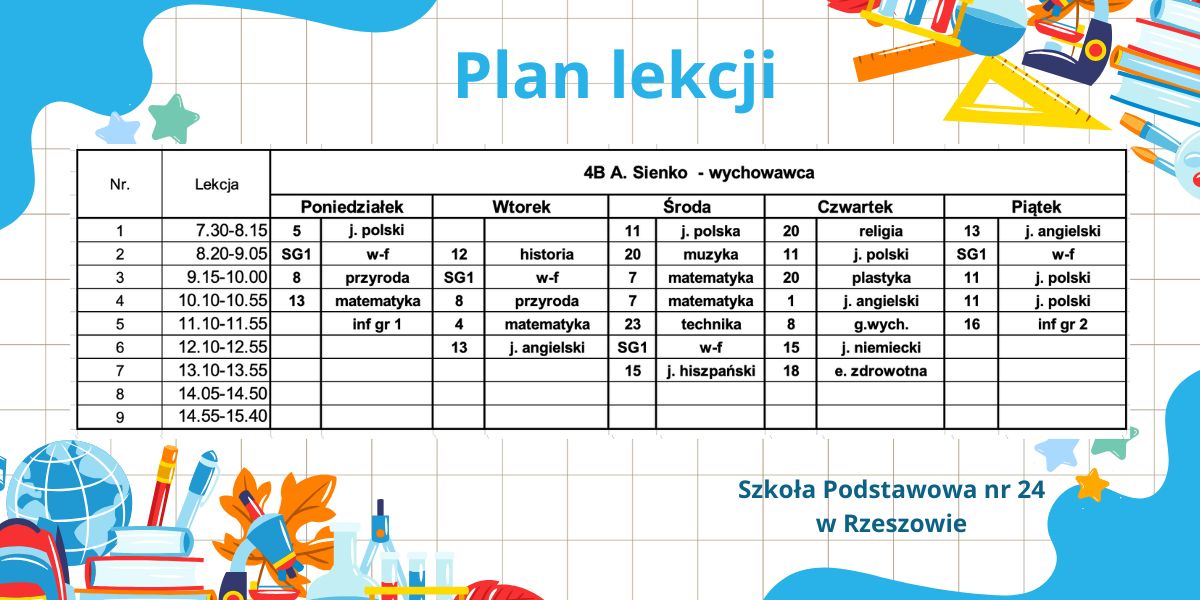 Plan lekcji – obowiązujący od 6.10.2025r. – korekta.
